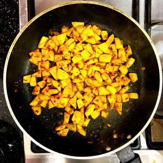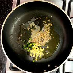 1. Heat up the ghee in a frying pan, once hot add cumin seeds, ginger, green chilli & sautee for a few minutes.